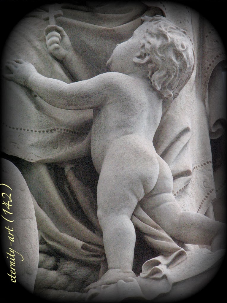 Magnífico sitio escultórico totalmente construído e esculpido em mármore em três níveis. Sobre uma base quadrada ladeada em cada canto com uma ânfora greco-romana, com uma tocha, símbolo clássico da imortalidade e vitória. Na parte central, ergue-se a base que suporta a lápide, decorada e facetada, com o nome, datas e títulos do barão. Logo acima, o pedestal com cantos recortados e facetados, tendo na parte frontal um relevo de uma ampulheta alada e um compasso. Nessa alegoria, a ampulheta representa a passagem da vida, o compasso a justiça e as asas a missão de Deus destinada a cada ser. Esse conjunto sustenta o destaque escultural de Hera, deusa da mitologia grega, com o seu grande manto, protetora da mulher, casamento e nascimento. Com a perna esquerda ligeiramente elevada, apoiada sobre um rolo de cordas que significa segurança, está encostada numa âncora, símbolo da salvação, esperança e estabilidade. Do seu lado direito sobressai a haste da âncora com a respectiva argolas com um entrelaçado de flores. Sobre a sua perna semi-flexionada apóia e segura com a mão uma criança que é amamentada no seu seio. Ao mesmo tempo segura outra criança nua no seu braço direito, quase agarrada ao seu pescoço. Ela olha para essa criança com olhar de carinho. Atrás, outra criança nua, com os pés sobre o braço da âncora, apóia-se na sua perna e lhe oferece um crucifixo, representando a fé e segurança da alma. Na base lateral direita, num pedestal decorado com alegrias de flores, sustenta uma escultura de um anjo alado, com as mãos juntas em sinal de prece e a cabeça ligeiramente baixa. Do lado esquerdo, num pedestal exatamente igual ao outro, sustenta uma escultura de uma anjo, sem asas, com a cabeça ligeiramente voltada para a direita e apoiada sobre a palma da mão, num profundo lamento e dor. Finalmente, na parte frontal inferior, um tampo em mármore dá acesso ao túmulo.